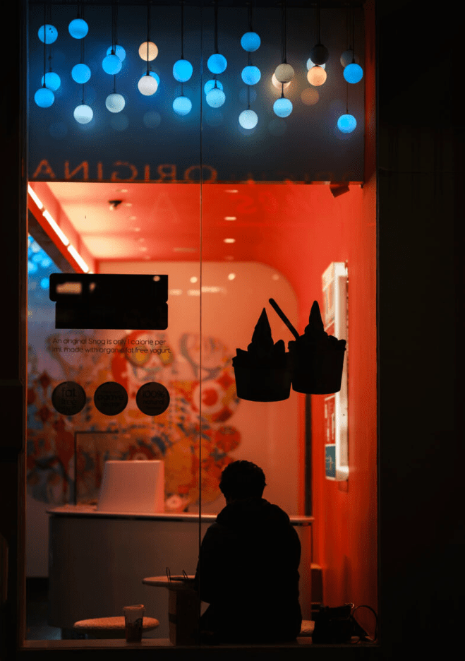 In my own work, especially within urban environments, I have drawn heavily from these cinematic aesthetics. Colour grading, backlighting, liminal spaces, ambiguous and threatening shadows, and reflections have all served to help create my desired final image. Some examples are shown below: